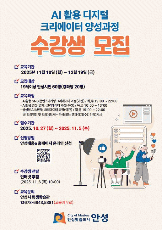 [»çȸ] ¾È¼º½Ã, '2±â µðÁöÅÐ Å©¸®¿¡ÀÌÅÍ ¾ç¼º°úÁ¤' ¼ö°­»ý ¸ðÁý |2025. 10.28