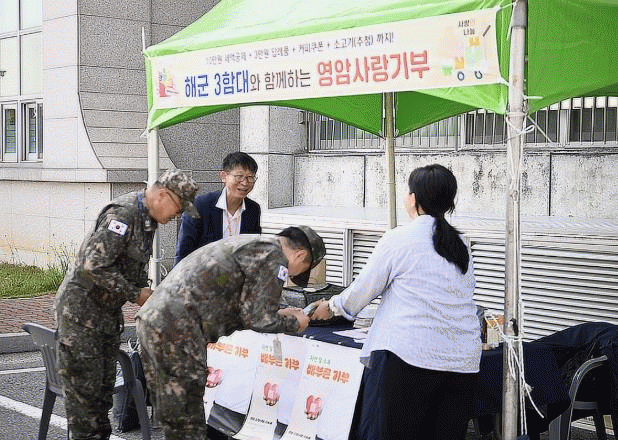 [NWS¹æ¼Û=Çѽ¸ñ ±âÀÚ]¿µ¾Ï±ºÀÌ 13~14ÀÏ ÇØ±º Á¦3ÇÔ´ë»ç·ÉºÎ¿¡¼­ °íÇâ»ç¶û±âºÎÁ¦¸¦ È«º¸, ÇØ±º À庴°ú ±º¹«¿ø µî 100¸í¿¡°Ô 1,000¸¸¿øÀÇ ±âºÎ±ÝÀ» ¸ð±ÝÇß´Ù. ±ºÀεéÀÇ ÀÏÅ͸¦ ã¾Æ°£ ¿µ¾Ï±ºÀÇ Á¦µµ ¾Ë¸² ³ë·Â¿¡ ÇØ±º À庴 µîÀÌ È£ÀÀÇϸ硦