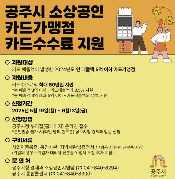 [»çȸ] °øÁÖ½Ã, ¼Ò»ó°øÀÎ Ä«µå¼ö¼ö·á ÃÖ´ë 60¸¸¿ø±îÁö Áö¿ø |2025. 05.16