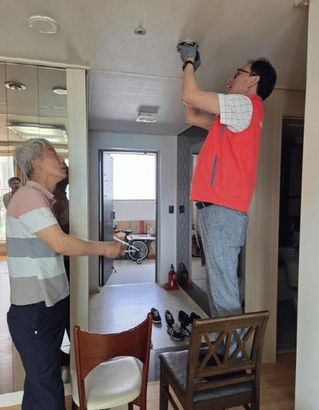 [NWS¹æ¼Û=Çѽ¸ñ ±âÀÚ]ÆÄÁֽà ¿îÁ¤3µ¿ Áö¿ª»çȸº¸ÀåÇùÀÇü´Â Ȧ¸ö ¾î¸£½Å °¡±¸¸¦ ¹æ¹®ÇØ ³ëÈÄµÈ ÀüµîÀ» ¹ß±¤´ÙÀÌ¿Àµå(LED) Á¶¸íÀ¸·Î ±³Ã¼ÇÏ´Â ºÀ»çȰµ¿À» ÁøÇàÇß´Ù. Áö¿ø ´ë»óÀº °í·ÉÀÇ È¦¸ö ¾î¸£½Å °¡±¸·Î, º»ÀÎÀÌ Á÷Á¢ ÀüµîÀ» ±³Ã¼Çϱ⡦