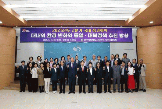[NWS¹æ¼Û=Çѽ¸ñ ±âÀÚ]¹ÎÁÖÆòÈ­ÅëÀÏÀÚ¹®È¸ÀÇ »óÁÖ½ÃÇùÀÇȸ´Â 5¿ù 15ÀÏ 10½Ã 30ºÐ »óÁÖ½Ãû ´ëȸÀǽǿ¡¼­ »óÁÖ½ÃÀå, ÀÚ¹®À§¿ø µî 45¿© ¸íÀÌ Âü¼®ÇÑ °¡¿îµ¥ ¡®´ë³»¿Ü ȯ°æ º¯È­¿Í ÅëÀÏ¡¤´ëºÏÁ¤Ã¥ ÃßÁø ¹æÇ⡯À» ÁÖÁ¦·Î 2025³â 2ºÐ±â Á¤±âȸ¡¦