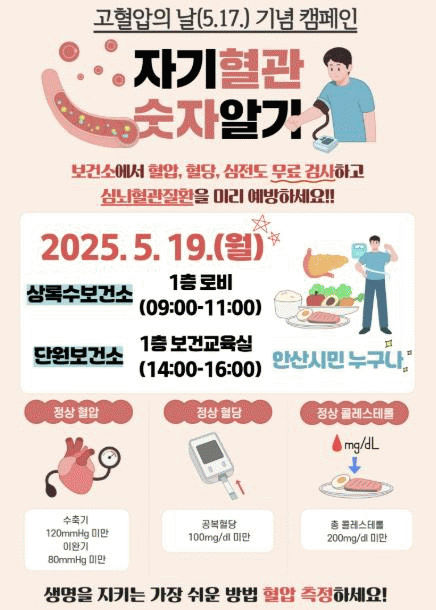 [»çȸ] ¾È»ê½Ã, 19ÀÏ ¼¼°è °íÇ÷¾ÐÀÇ ³¯ ¸Â¾Æ °Ç°­ Ä·ÆäÀÎ Àü°³ |2025. 05.16