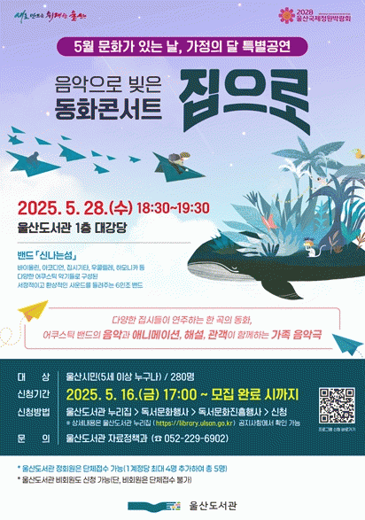 [»çȸ] 5¿ù ¹®È­°¡ ÀÖ´Â ³¯, °¡Á¤ÀÇ ´Þ Ưº° °ø¿¬ ¿ï»êµµ¼­°ü¿¡¼­ ¸¸³ª´Â µ¿È­¿¬ÁÖȸ(Äܼ­Æ®)¡®ÁýÀ¸·Î¡¯ |2025. 05.16