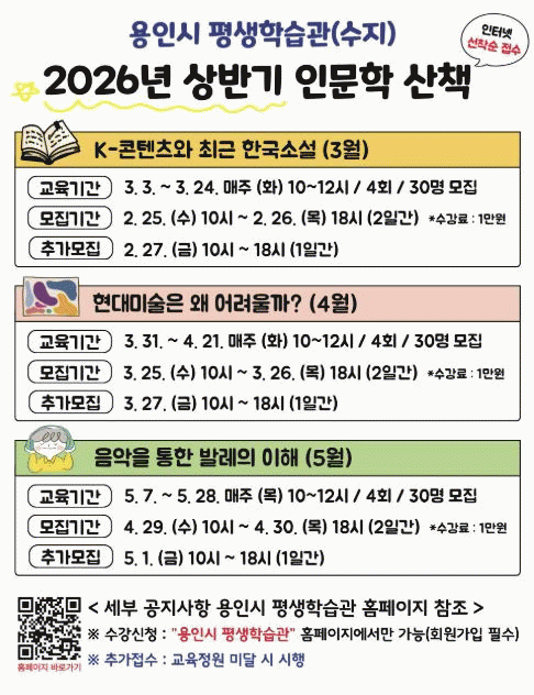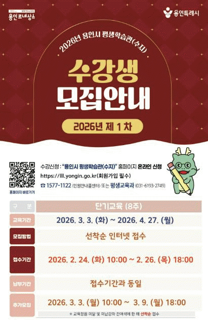 [»çȸ] ¿ëÀÎÆ¯·Ê½Ã, Æò»ýÇнÀ°ü Á¦1Â÷ ´Ü±â ±³À° ¼ö°­»ý ¸ðÁý |2026. 02.13