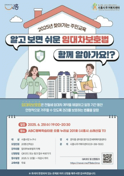 [NWS¹æ¼Û=Çѽ¸ñ ±âÀÚ]½ÃÈï½ÃÁְź¹Áö¼¾ÅÍ´Â ½Ã¹ÎµéÀÇ ÁÖ°Å ¾ÈÁ¤À» µ½±â À§ÇØ ¡®Ã£¾Æ°¡´Â Áְź¹Áö ÁֹΠ±³À°¡¯À» ¿À´Â 6¿ù 25ÀÏ ¿ÀÈÄ 7½ÃºÎÅÍ 8½Ã 30ºÐ±îÁö ½ÃÈïABCÇູÇнÀŸ¿î¿¡¼­ ¿î¿µÇϸç, ¼ö°­»ýÀ» ¸ðÁýÇÑ´Ù. À̹ø ±³À°Àº °æ±âµµÀü¡¦