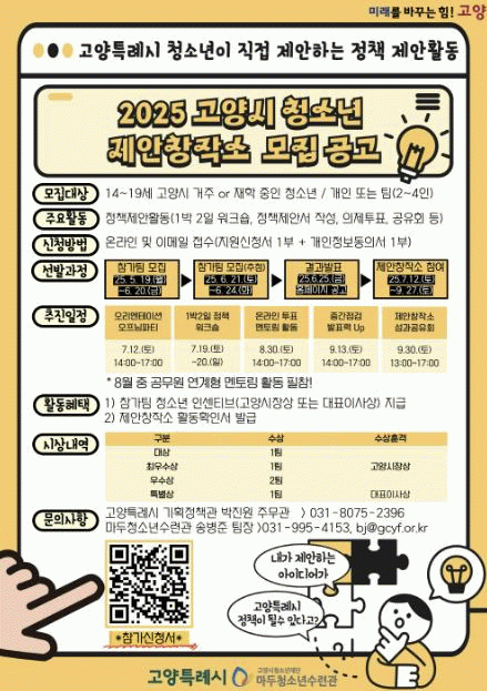 [»çȸ] °í¾ç½Ã, 2025³â û¼Ò³â Á¦¾ÈâÀÛ¼Ò Âü°¡ÀÚ ¸ðÁý |2025. 05.16