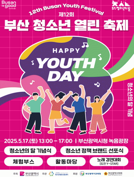 [NWS¹æ¼Û=Çѽ¸ñ ±âÀÚ]ºÎ»ê½Ã´Â û¼Ò³âÀÇ ´Þ 5¿ùÀ» ¸Â¾Æ, ³»ÀÏ(17ÀÏ) ¿ÀÈÄ 1½ÃºÎÅÍ 5½Ã±îÁö ½Ãû ³ìÀ½±¤Àå¿¡¼­ û¼Ò³âÀÌ ÁÖÀΰøÀÌ µÇ´Â Âü¿©Çü ÃàÁ¦ÀÎ 'Á¦12ȸ ºÎ»ê û¼Ò³â ¿­¸° ÃàÁ¦'¸¦ °³ÃÖÇÑ´Ù°í ¹àÇû´Ù. À̹ø Çà»ç´Â ½Ã¿Í ½Ãû¼Ò³â¡¦