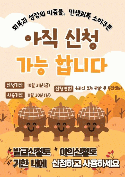 [NWS¹æ¼Û=Çѽ¸ñ ±âÀÚ]ÀÇÁ¤ºÎ½Ã°¡ ¹Î»ýȸº¹ ¼ÒºñÄíÆù 2Â÷ Áö±Þ ½ÅûÀÌ 10¿ù 31ÀÏ ¿ÀÈÄ 6½Ã¿¡ ¸¶°¨µÈ´Ù¸ç ½Å¼ÓÇÑ ½ÅûÀ» ´çºÎÇß´Ù. Áö±ÞµÈ ±Ý¾×Àº 11¿ù 30ÀϱîÁö »ç¿ëÇØ¾ß Çϸç, ±âÇÑ ³» ¹Ì½Åû ¹× ¹Ì»ç¿ë ±Ý¾×Àº ÀÚµ¿ ¼Ò¸êµÈ´Ù. 26ÀÏ ±â¡¦