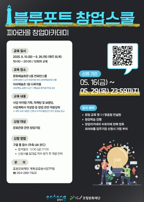 [NWS¹æ¼Û=Çѽ¸ñ ±âÀÚ] Æ÷Ç×¹®È­Àç´ÜÀº ±¸·æÆ÷ Áö¿ª °ü±¤»ê¾÷ Ȱ¼ºÈ­¸¦ À§ÇÑ Ã¢¾÷ ÀÎÅ¥º£ÀÌÆÃ ÇÁ·Î±×·¥ ¡®ºí·çÆ÷Æ® â¾÷½ºÄð¡¯ÀÇ Âü¿©ÆÀÀ» ¿À´Â 16ÀϺÎÅÍ 29ÀϱîÁö 2ÁÖ°£ °ø°³ ¸ðÁýÇÑ´Ù. ¡®ºí·çÆ÷Æ® â¾÷½ºÄð¡¯Àº Æ÷Ç׽à °ü±¤»ê¾÷°ú¡¦