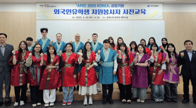 [NWS¹æ¼Û=Çѽ¸ñ ±âÀÚ]°æ»óºÏµµ´Â 2025³â °æÁÖ APEC ¼º°ø°³ÃÖ Áö¿øÀ» À§ÇØ µµ³» ´ëÇп¡ ÀçÇÐ ÁßÀÎ ¿Ü±¹ÀÎ À¯Çлý 20¸íÀ» ÀÚ¿øºÀ»çÀÚ·Î ¼±¹ßÇØ 5.17~18(1¹Ú2ÀÏ)±îÁö °æÁÖ ÀÏ¿ø¿¡¼­ ¿Ü±¹ÀÎ ½ÃÁ¡¿¡¼­ Áغñ »óȲÀ» Á¡°ËÇÏ´Â µî, APEC Á¤»óȸÀÇ¡¦