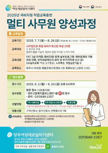 [°æÁ¦] ¾çÁÖ½Ã, 2025³â ¾çÁÖ¿©¼º»õ·ÎÀÏÇϱ⼾ÅÍ ¡®¸ÖƼ »ç¹«¿ø ¾ç¼º °úÁ¤¡¯ ±³À°»ý ¸ðÁý |2025. 05.15