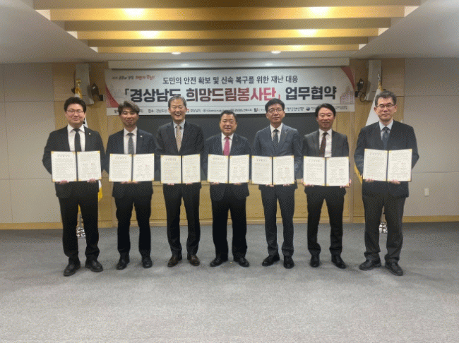 [NWS¹æ¼Û=Çѽ¸ñ ±âÀÚ]°æ»ó³²µµ´Â 15ÀÏ, µµÃ» µµÁ¤È¸Àǽǿ¡¼­ °ÇÃà.Àü±â.¼Ò¹æ.±â°è¼³ºñ µî 6°³ ºÐ¾ßÀÇ ¹Î°£ Àü¹®´Üü¿Í ¡®°æ»ó³²µµ Èñ¸Áµå¸²ºÀ»ç´Ü¡¯ ±¸¼º ¹× ¿î¿µÀ» À§ÇÑ ¾÷¹«Çù¾à(MOU)À» ü°áÇß´Ù. À̹ø Çù¾àÀ» ÅëÇØ °æ³²µµ´Â ÀçÇØ¡¤¡¦