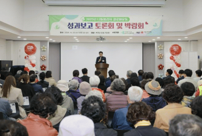 [NWS¹æ¼Û=Çѽ¸ñ ±âÀÚ]±ºÆ÷½Ã³ëÀκ¹Áö°üÀº 10¿ù 22ÀÏ º¹Áö°ü 2Ãþ °­´ç°ú ¿îµ¿Àå¿¡¼­ ¡®2025³â ³ªµ¹º½°¨»ç Ŭ·Î¹ö¿îµ¿ ¼º°úº¸°í Åä·Ðȸ ¹× ¹Ú¶÷ȸ¡¯¸¦ 300¿© ¸íÀÇ ³»¿ÜºóÀÌ Âü¼®ÇÑ °¡¿îµ¥ ¼ºÈ²¸®¿¡ °³ÃÖÇß´Ù. À̹ø Çà»ç´Â ¡®³ªµ¹º½°¨»ç Ŭ¡¦