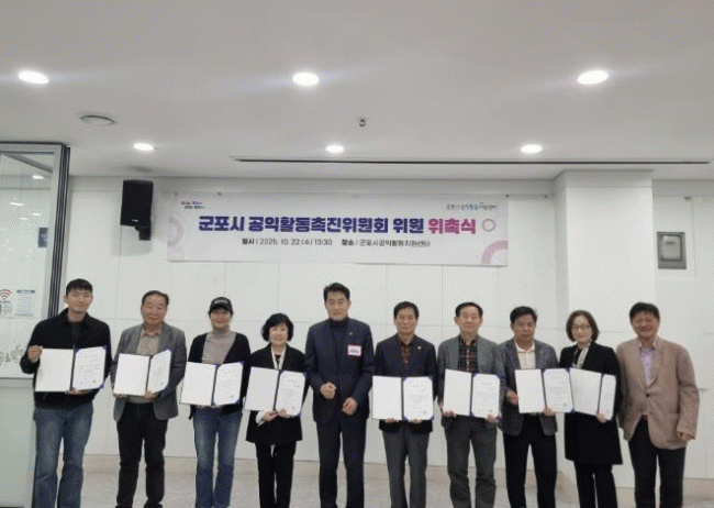 [NWS¹æ¼Û=Çѽ¸ñ ±âÀÚ]±ºÆ÷½Ã °øÀÍȰµ¿Áö¿ø¼¾ÅÍ´Â Áö³­ 22ÀÏ ¼¾ÅÍ¿¡¼­ ±ºÆ÷½Ã °øÀÍȰµ¿ ÃËÁø Ȱ¼ºÈ­ÀÇ ½ÃÀÛÀ» ¾Ë¸®´Â ¡®±ºÆ÷½Ã°øÀÍȰµ¿ÃËÁøÀ§¿øÈ¸¡¯ À§¿ø À§Ã˽ÄÀ» °³ÃÖÇß´Ù°í ¹àÇû´Ù. À§ÃËµÈ À§¿øµéÀº ±ºÆ÷½Ã »õ¸¶À»È¸, ±ºÆ÷½Ã Àå¾ÖÀÎü¡¦