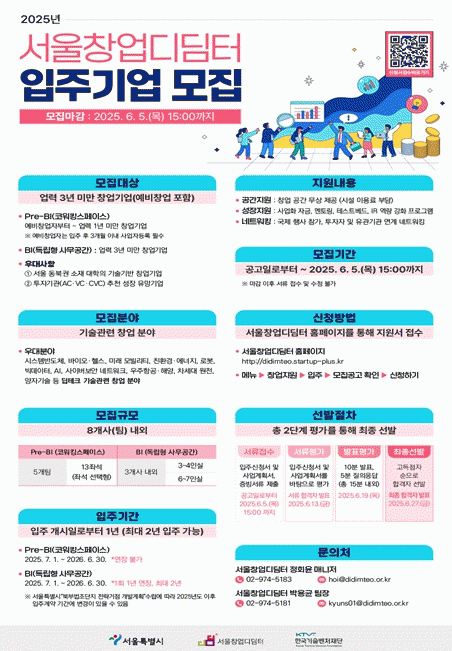 [°æÁ¦] ¼­¿ï½Ã, »êÇп¬°è ±â¼úâ¾÷ Ȱ¼ºÈ­ÇÑ´Ù¡¦'¼­¿ïâ¾÷µðµõÅÍ' ½Å±Ô ÀÔÁÖ±â¾÷ ¸ðÁý |2025. 05.15