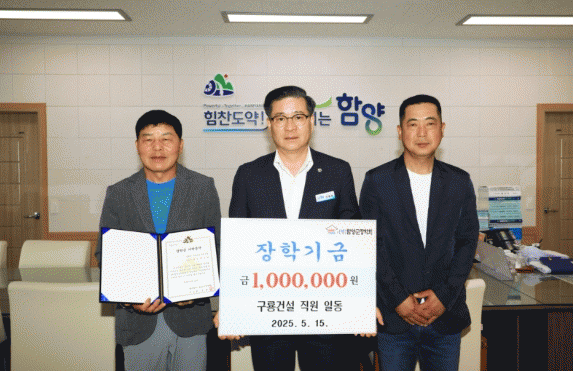 [NWS¹æ¼Û=Çѽ¸ñ ±âÀÚ](Àç)ÇԾ籺ÀåÇÐȸ´Â 5¿ù 15ÀÏ, ±¸·æ°Ç¼³(´ëÇ¥ ¾ç±âºÀ) Á÷¿øµéÀÌ Áö¿ª ÀÎÀç À°¼ºÀ» À§ÇÑ ÀåÇÐ±Ý 100¸¸ ¿øÀ» ±âŹÇß´Ù°í ¹àÇû´Ù. ¾ç±âºÀ ´ëÇ¥´Â Áö³­ÇØ¿¡ ÀÌ¾î ¿ÃÇØµµ Áö¿ª ÇлýµéÀÇ ²Þ°ú Èñ¸ÁÀ» ÀÀ¿øÇÏ´Â ¸¶À½À» ´ã¡¦