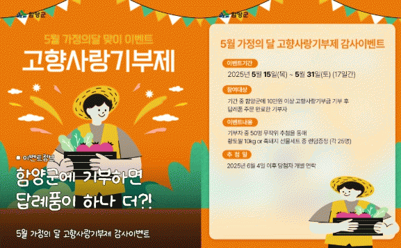 [NWS¹æ¼Û=Çѽ¸ñ ±âÀÚ]ÇԾ籺Àº 5¿ù °¡Á¤ÀÇ ´ÞÀ» ¸Â¾Æ °íÇâ»ç¶û±âºÎÁ¦¿¡ Âü¿©ÇÑ ±âºÎÀÚ¿¡°Ô °¨»çÀÇ ¸¶À½À» ÀüÇϰíÀÚ, 5¿ù 15ÀϺÎÅÍ 31ÀϱîÁö 17Àϰ£ ¡®°íÇâ»ç¶û±âºÎÁ¦ °¨»ç À̺¥Æ®¡¯¸¦ ÁøÇàÇÑ´Ù À̹ø À̺¥Æ®´Â Áö¿ª°æÁ¦ Ȱ¼ºÈ­¿Í °íÇâ»ç¡¦