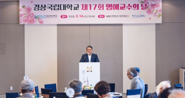 [NWS¹æ¼Û=Çѽ¸ñ ±âÀÚ]°æ»ó±¹¸³´ëÇб³¸í¿¹±³¼öȸ ½ÅÀÓȸÀå¿¡ Àι®´ëÇÐ ¿µ¾î¿µ¹®Çаú ±è±æ¼ö ¸í¿¹±³¼ö°¡ ¼±ÀӵƴÙ. °æ»ó±¹¸³´ëÇб³ ¸í¿¹±³¼öȸ´Â 5¿ù 14ÀÏ ¿ÀÀü MBCÄÁº¥¼Ç¿¡¼­ ¿­¸° ¡®Á¦17ȸ °æ»ó±¹¸³´ëÇб³ ¸í¿¹±³¼öÀÇ ³¯¡¯ Çà»ç ¶§ Á¤¡¦