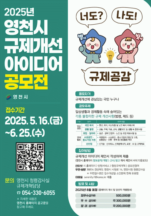 [»çȸ] ¿µÃµ½Ã, ¡®2025³â ±ÔÁ¦°³¼± ¾ÆÀ̵ð¾î °ø¸ðÀü¡¯ °³ÃÖ |2025. 05.15