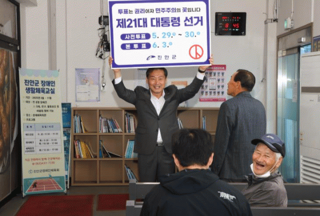[NWS¹æ¼Û=Çѽ¸ñ ±âÀÚ]Áø¾È±ºÀÌ 6¿ù 3ÀÏ ½Ç½ÃµÇ´Â Á¦21´ë ´ëÅë·É¼±°Å¸¦ ¾ÕµÎ°í ±º¹ÎµéÀ» ´ë»óÀ¸·Î ÅõÇ¥ Âü¿© µ¶·Á¿¡ ³ª¼¹´Ù. 15ÀÏ ±º¿¡ µû¸£¸é ÅõÇ¥ Âü¿© ºÐÀ§±â È®»êÀ» À§ÇØ ¡ã´ÜüÀå Ä·ÆäÀÎ ÃßÁø ¡ãÇö¼ö¸· °Ô½Ã ¡ã´ëÇü LED Àü±¤ÆÇ È«º¸¡¦