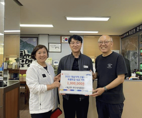 [»çȸ] ¾çÆò±º °³±º¸é ÁÖ¹ÎÀÚÄ¡À§¿øÈ¸, ¿µ³²Áö¿ª »êºÒ ÇÇÇØ ÀÌÀç¹Î µ½±â ¼º±Ý Àü´Þ |2025. 05.15