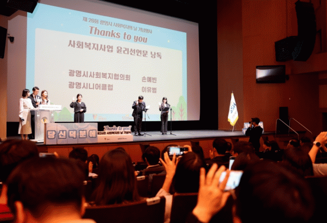 [NWS¹æ¼Û=Çѽ¸ñ ±âÀÚ]±¤¸í½Ã°¡ »çȸº¹ÁöÀÎÀÇ Çå½ÅÀ» ±â¸®´Â È­ÇÕÀÇ ÀåÀ» ¿­¾ú´Ù. ½Ã´Â 26ÀÏ ±¤¸í½Ã¹Îȸ°ü ´ë°ø¿¬Àå¿¡¼­ »çȸº¹ÁöÁ¾»çÀÚ, ÀÚ¿øºÀ»çÀÚ, »çȸº¹Áö´ã´ç °ø¹«¿ø µî 300¿© ¸íÀÌ Âü¼®ÇÑ °¡¿îµ¥ ¡®Á¦26ȸ ±¤¸í½Ã »çȸº¹ÁöÀÇ ³¯¡¯¡¦