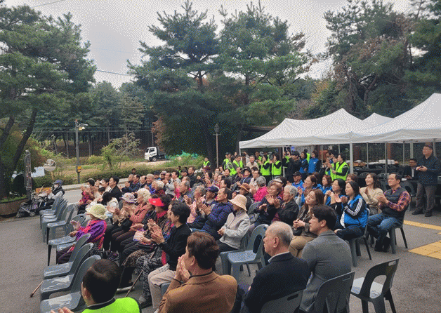 [NWS¹æ¼Û=Çѽ¸ñ ±âÀÚ]Çϳ²½Ã ÃÊÀ̵¿ ÁÖ¹ÎÀÚġȸ´Â 10¿ù 26ÀÏ ÃÊÀ̵¿ÇàÁ¤º¹Áö¼¾ÅÍ ¾Õ ÁÖÂ÷Àå¿¡¼­ ¡®°æ·ÎÀÇ ´Þ ±â³ä ¼¼´ë°ø°¨ ¼ÒÅëÀ» À§ÇÑ ¾î¸¥°ø°æ¡¤Èú¸µ¹®È­°ø¿¬¡¯À» ¼ºÈ²¸®¿¡ °³ÃÖÇß´Ù. À̹ø Çà»ç´Â ¼¼´ë °£ÀÇ º®À» Çã¹°°í ÇÔ²² ¼ÒÅëÇÏ¡¦