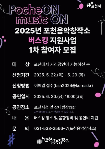 [»çȸ] Æ÷õ½Ã, 2025³â À½¾ÇâÀÛ¼Ò ±æ°Å¸® °ø¿¬(¹ö½ºÅ·) °ø¿¬ÀÚ ¸ðÁý |2025. 05.15