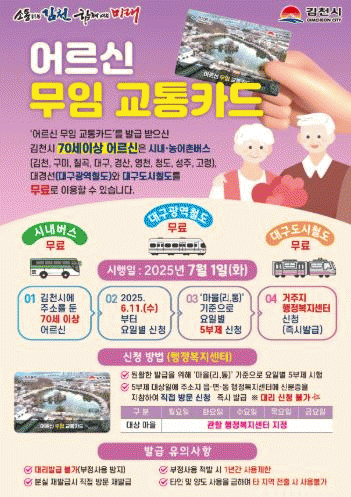 [»çȸ] ±èõ½Ã, 7¿ù 1ÀϺÎÅÍ 70¼¼ ÀÌ»ó ¾î¸£½Å´ëÁß±³Åë ¹«·á ÀÌ¿ë ½ÃÇà |2025. 05.15