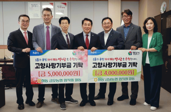 [NWS¹æ¼Û=Çѽ¸ñ ±âÀÚ]¾ç»ê½Ã´Â ¾ç»ê³óÇù°ú Çϵ¿ ±Ý¿À³óÇù, ±Ý³²³óÇùÀÌ Áö³­ 14ÀÏ Áö¿ª °£ »ó»ý¹ßÀü°ú °íÇâ»ç¶û±âºÎÁ¦¸¦ ÀÀ¿øÇϱâ À§ÇØ 3³â ¿¬¼Ó »óÈ£±âºÎ¸¦ ÅëÇØ °íÇâ»ç¶û±âºÎ±Ý 900¸¸¿øÀ» ±âŹÇß´Ù°í ¹àÇû´Ù. ÀÌµé ³óÇù ÀÓÁ÷¿øµéÀÇ Áö¡¦