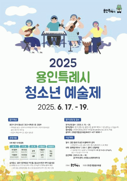 [NWS¹æ¼Û=Çѽ¸ñ ±âÀÚ]¿ëÀÎÆ¯·Ê½Ã´Â 6¿ù 17ÀϺÎÅÍ 3Àϰ£ ÁøÇàµÇ´Â ¡®2025 û¼Ò³â ¿¹¼úÁ¦¡¯¿¡ Âü°¡ÇÒ Ã»¼Ò³âÀ» ¸ðÁýÇÑ´Ù°í 15ÀÏ ¹àÇû´Ù. ½Ã´Â Áö¿ª û¼Ò³âµéÀÇ ¿¹¼úÀû ¿ª·®À» °³¹ßÇϰí âÀǼº°ú ¹®È­ °¨¼ö¼ºÀ» Ű¿ì±â À§ÇØ ¸Å³â ¿¹¼úÁ¦¸¦¡¦