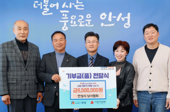[NWS¹æ¼Û=Çѽ¸ñ ±âÀÚ]¾È¼º½Ã ³¬½ÃÇùȸ´Â 2¿ù 25ÀÏ ¾È¼º½Ã¸¦ ¹æ¹®ÇØ ¼º±Ý 650¸¸ ¿øÀ» Àü´ÞÇß´Ù. À̹ø ±âŹÀº ³¬½ÃÇùȸ ȸ¿øµéÀÌ ÀÚ¹ßÀûÀ¸·Î ¸¶·ÃÇÑ ±Ý¾×À¸·Î, ¾È¼º½Ã º¹Áö ÁõÁø°ú µµ¿òÀÌ ÇÊ¿äÇÑ ÀÌ¿ô Áö¿øÀ» À§ÇÑ ¶æÀ» ´ã¾Æ ÃßÁøµÆ´Ù. ¡¦