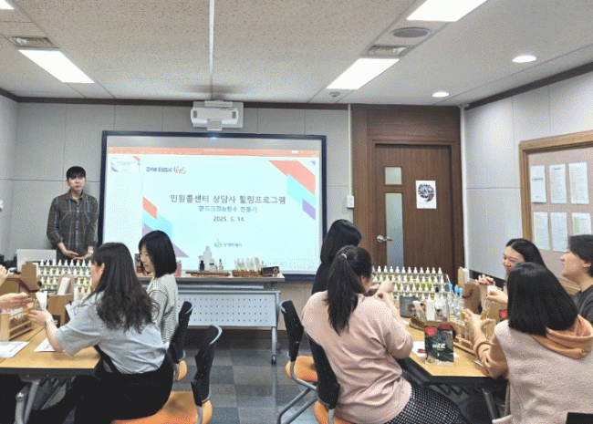[NWS¹æ¼Û=Çѽ¸ñ ±âÀÚ]â¿øÆ¯·Ê½Ã´Â 14ÀÏ ¹Î¿øÄݼ¾ÅÍ ³» ±³À°Àå¿¡¼­ Äݼ¾ÅÍ »ó´ã»çµéÀ» À§ÇÑ ¡®ÇÚµåÅ©¸² ¹× Çâ¼ö ¸¸µé±â üÇ衯 ÇÁ·Î±×·¥À» ÁøÇàÇß´Ù°í ¹àÇû´Ù. À̹ø ÇÁ·Î±×·¥Àº »ó´ã ¾÷¹«·Î ÀÎÇÑ °¨Á¤³ëµ¿°ú ÇÇ·Î ´©ÀûÀ» ¿ÏÈ­Çϱâ À§ÇØ¡¦
