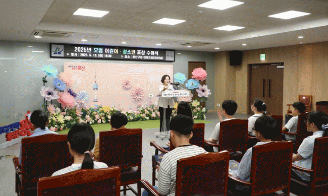 [NWS¹æ¼Û=Çѽ¸ñ ±âÀÚ] ¼­¿ï ¿ë»ê±¸´Â 2025³â ¾î¸°ÀÌÁÖ°£°ú û¼Ò³âÀÇ ´ÞÀ» ¸Â¾Æ, ¹Ù¸£°í ¼º½ÇÇÑ Åµµ·Î ŸÀÇ ¸ð¹üÀÌ µÈ ¾î¸°ÀÌ¿Í Ã»¼Ò³â, ±×¸®°í ¾Æµ¿¡¤Ã»¼Ò³âÀÇ ±Ç¸® ÁõÁø¿¡ ¾ÕÀå¼± ÁÖÀΰø 29¸íÀ» ¼±Á¤ÇØ Ç¥Ã¢ÀåÀ» ¼ö¿©Çß´Ù. À̹ø Ç¥¡¦
