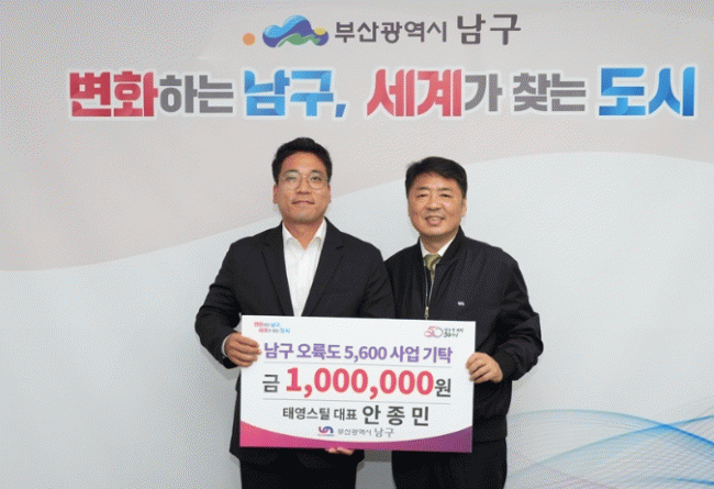 [NWS¹æ¼Û=Çѽ¸ñ ±âÀÚ]Áö³­ 13ÀÏ(È­), Å¿µ½ºÆ¿(´ëÇ¥ ¾ÈÁ¾¹Î)Àº ºÎ»ê±¤¿ª½Ã ³²±¸¿¡ ÀÌ¿ôµ½±â ¼º±Ý 1¹é¸¸ ¿øÀ» Àü´ÞÇß´Ù. Å¿µ½ºÆ¿Àº ºÎ»ê °­¼­±¸ ¼ÒÀçÀÇ Àç»ý¿ë Àç·á ¼öÁý ¹× ÆÇ¸Å¾÷ü·Î ³²±¸ Àú¼ÒµæÃþ ÁÖ¹ÎÀ» À§Çؼ­ ¼º±ÝÀ» ±âŹÇß´Ù¡¦