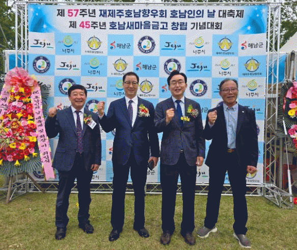 [NWS¹æ¼Û=Çѽ¸ñ ±âÀÚ]14ÀÏ Àü¶ó³²µµ ³ªÁֽÿ¡ µû¸£¸é À±º´Å ½ÃÀåÀÌ ÃÖ±Ù Á¦ÁÖ ½Ã¹Îº¹ÁöŸ¿î¿¡¼­ ¿­¸° ¡®Á¦57ÁÖ³â Àç)Á¦ÁÖÈ£³²Çâ¿ìȸ È£³²ÀÎÀÇ ³¯ ´ëÃàÁ¦¡¯¿¡ Âü¼®ÇØ ½ÅÀÓ È¸ÀåÀÇ ÃëÀÓÀ» ÃàÇÏÇß´Ù. À±º´Å ½ÃÀåÀº ¡®Á¦57ÁÖ³â Àç)Á¦ÁÖÈ£¡¦