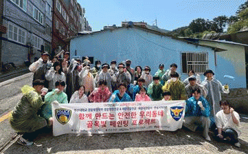 [NWS¹æ¼Û=Çѽ¸ñ ±âÀÚ]ÇØ¿î´ë±¸ µµ½ÃÀç»ýÁö¿ø¼¾ÅÍ´Â 12ÀÏ ¹Ý¼Û1µ¿ µµ½ÃÀç»ý»ç¾÷ÀÇ ÀÏȯÀ¸·Î Áö¿ªÀÇ ¹æÄ¡µÈ ºóÁý º®¸éÀ» ÆäÀÎÆ®·Î Ä¥ÇØ »ê¶æÇÏ°Ô ¸¸µé¾ú´Ù. ¿µ»ê´ë °æÂûÇàÁ¤Çаú ÀçÇлý, ÇØ¿î´ë°æÂû¼­, ¹Ý¼Û1µ¿ ÁֹΠµî 30¿© ¸íÀÌ ºóÁý µÎ¡¦