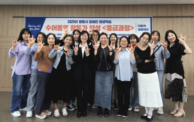 [NWS¹æ¼Û=Çѽ¸ñ ±âÀÚ]±¤¸í½Ã´Â 14ÀÏ ±¤¸í½Ã Æò»ýÇнÀ¿ø¿¡¼­ ¡®Àå¾ÖÀÎ Æò»ýÇнÀ ¼ö¾îÅ뿪 Ȱµ¿°¡ ¾ç¼º Áß±Þ°úÁ¤¡¯ ¼ö·á½ÄÀ» °³ÃÖÇß´Ù. À̹ø °úÁ¤Àº û°¢Àå¾ÖÀÎÀÇ Æò»ýÇнÀ Âü¿©¸¦ Áö¿øÇϰí, Áö¿ª ³» ¼ö¾îÅ뿪 ÀηÂÀÚ¿øÀ» È®º¸Çϱâ À§ÇØ ¡¦