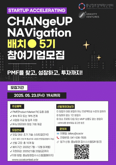 [NWS¹æ¼Û=ÇãÀº¼­ ±âÀÚ]Ãæ³²Ã¢Á¶°æÁ¦Çõ½Å¼¾ÅÍ´Â ¿ì¼öÇÑ ±â¼ú ½ºÅ¸Æ®¾÷ÀÇ ¼ºÀåÀ» Áö¿øÇϱâ À§ÇÑ 2025 CHANGeUP NAVIgation ¹èÄ¡(Batch) 5±â ÇÁ·Î±×·¥ Âü°¡±â¾÷ ¸ðÁý ¸¶°¨ÀÏÀ» 5¿ù 23ÀÏ 19½Ã±îÁö·Î ¿¬ÀåÇÑ´Ù°í ¹àÇû´Ù. À̹ø ¹èÄ¡ ÇÁ·Î±×·¥ÀÇ¡¦