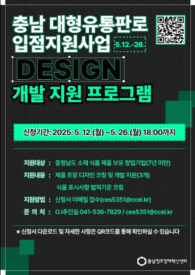 [°æÁ¦] Ãæ³²Ã¢Á¶°æÁ¦Çõ½Å¼¾ÅÍ, ¡®2025³â Ãæ³² ´ëÇüÀ¯ÅëÆÇ·Î ÀÔÁ¡Áö¿ø»ç¾÷¡¯ µðÀÚÀÎ °³¹ß Áö¿ø ÇÁ·Î±×·¥ Âü°¡±â¾÷ ¸ðÁý |2025. 05.14