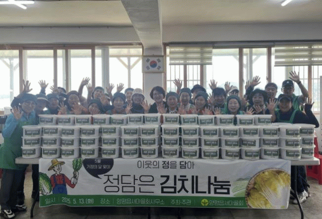 [NWS¹æ¼Û=Çѽ¸ñ ±âÀÚ]¾çÆòÀ¾»õ¸¶À»È¸´Â 13ÀÏ ¾çÆòÀ¾»õ¸¶À»È¸»ç¹«¼Ò¿¡¼­ ¡®5¿ù °¡Á¤ÀÇ ´Þ ¸ÂÀÌ Á¤ ´ãÀº ±èÄ¡ ³ª´®¡¯ ºÀ»ç¸¦ ÁøÇàÇØ ÀÌ¿ô»ç¶ûÀ» ½ÇõÇß´Ù. À̹ø Çà»ç´Â ¾çÆòÀ¾»õ¸¶À»È¸ÀÇ ´ëÇ¥ÀûÀÎ »çȸ °øÇå Ȱµ¿ Áß Çϳª·Î, »õ¸¶À»È¸¿øµé¡¦