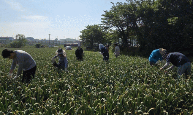 [NWS¹æ¼Û=Çѽ¸ñ ±âÀÚ]¿µÃµ½Ã °¡Á·Çູ°ú´Â 14ÀÏ ³ó¹ø±â¸¦ ¸Â¾Æ ÀÏ¼Õ ºÎÁ·À¸·Î ¾î·Á¿òÀ» °Þ°í ÀÖ´Â °ü³» °ú¼ö ³ó°¡¸¦ ¹æ¹®ÇØ º½Ã¶ ³óÃÌÀϼյ½±â¸¦ ½Ç½ÃÇß´Ù. À̳¯ Àϼյ½±â¿¡´Â °¡Á·Çູ°ú Á÷¿ø 15¸íÀÌ Âü¿©ÇßÀ¸¸ç, º¹¼þ¾Æ¡¤ÀڵΠÀç¹è ³ó¡¦