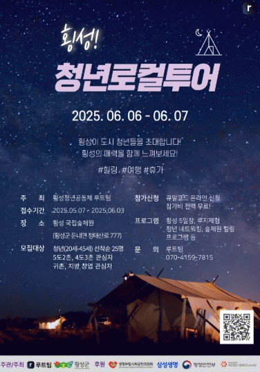 [NWS¹æ¼Û=Çѽ¸ñ ±âÀÚ]Áö¿ªÀÇ ¸í¼Ò¸¦ ¹æ¹®ÇØ Èú¸µÇϰí Ⱦ¼º¸¸ÀÇ ¸Å·ÂÀ» ´À³¥ ¼ö Àִ¡®È¾¼ºÃ»³â·ÎÄÃÅõ¾î¡¯´ÙÀ½´Þ 6ÀϺÎÅÍ 7ÀϱîÁö 1¹Ú 2Àϰ£, Ⱦ¼º ±¹¸³½£Ã¼¿ø¿¡¼­ ¿­¸°´Ù. À̹ø Çà»ç´Â Áö¿ªÃ»³âÁö¿ø»ç¾÷(Boost Your Local)ÀÇ ÀÏȯÀ¸·Î ¡¦