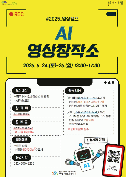 [»çȸ] ºÎÆò±¸Ã»¼Ò³â¼ö·Ã°ü, 2025 ¿µ»óÄ·ÇÁ ¡®AI ¿µ»óâÀÛ¼Ò¡¯ Âü°¡ÀÚ ¸ðÁý |2025. 05.14