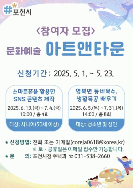 [»çȸ] Æ÷õ½Ã ¿µºÏ¸é, ¹®È­¿¹¼ú ÇÁ·Î±×·¥ '¾ÆÆ®¾ØÅ¸¿î ½ÃÁð2' ¿î¿µ |2025. 05.14
