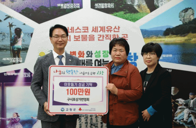 [NWS¹æ¼Û=Çѽ¸ñ ±âÀÚ]°íⱺ ±¸½ÃÆ÷»ó°¡¹ø¿µÈ¸°¡ Áö³­ 13ÀÏ °íⱺûÀ» ã¾Æ 100¸¸¿øÀÇ ÀÌ¿ôµ½±â ¼º±ÝÀ» ±âŹÇß´Ù. ±¸½ÃÆ÷»ó°¡¹ø¿µÈ¸ ±èȸÀÚ È¸ÀåÀº ¡°°í¿äÇÑ ¹Ù´Ù À§·Î ÇÞ»ìÀÌ ÆÛÁöµí, ¿À´ÃÀÇ ³ª´®ÀÌ °íâ °÷°÷¿¡ ÀÜÀÜÇÑ °¨µ¿À¸·Î ¹ø¡¦