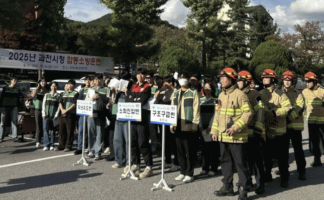 [NWS¹æ¼Û=Çѽ¸ñ ±âÀÚ]°úõ½Ã´Â Áö³­ 24ÀÏ °úõ¼Ò¹æ¼­¿Í ÇÔ²² ¡®2025³â ÇÕµ¿¼Ò¹æÈƷá¯À» ÁøÇàÇß´Ù. ÈÆ·ÃÀº ½Ãû»ç ³» È­Àç ¹ß»ý »óȲÀ» °¡Á¤ÇØ ÁøÇàµÆÀ¸¸ç, È­Àç °æº¸°¡ ¹ß·ÉµÇÀÚ ½Ãû Á÷¿ø°ú ¹Î¿øÀεéÀÌ ½Å¼ÓÇÏ°Ô ´ëÇÇÇÏ´Â µî ½ÇÁ¦ »ó¡¦