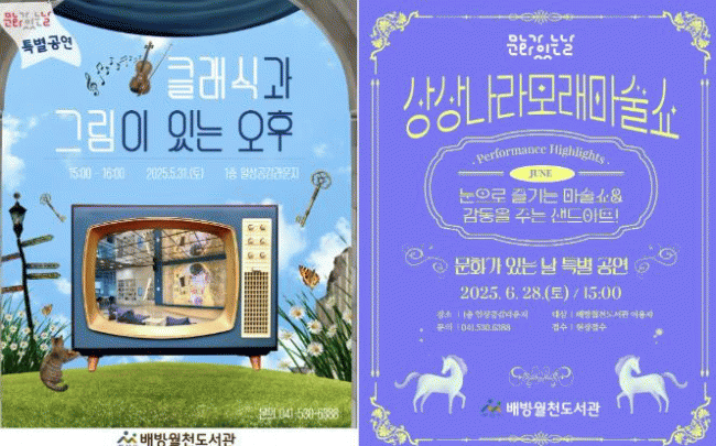 [NWS¹æ¼Û=Çѽ¸ñ ±âÀÚ]¾Æ»ê½Ã ¹è¹æ¿ùõµµ¼­°üÀÌ Áö¿ª ÁÖ¹ÎÀÇ ¹®È­ ÇâÀ¯ ±âȸ È®´ë¿Í ¿¹¼ú Âü¿© Ȱ¼ºÈ­¸¦ À§ÇØ 2025³â »ó¹Ý±â ¡®¹®È­°¡ ÀÖ´Â ³¯¡¯ Ưº°°ø¿¬À» ¿î¿µÇÑ´Ù. ¡®¹®È­°¡ ÀÖ´Â ³¯¡¯Àº ¸Å¿ù ¸¶Áö¸· ÁÖ Àü±¹ÀûÀ¸·Î ¿î¿µµÇ´Â ¹®È­ È®¡¦