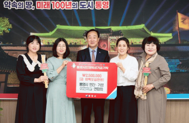 [NWS¹æ¼Û=Çѽ¸ñ ±âÀÚ] Å뿵½Ã ¹Î°£ ¡¤ °¡Á¤¾î¸°ÀÌÁý¿¬ÇÕȸ´Â Áö³­ 12ÀÏ Å뿵½Ã¸¦ ¹æ¹®ÇØ ¿ì¼öÇÑ ÀÎÀç À°¼ºÀ» À§ÇØ ½á´Þ¶ó¸ç ¼º±Ý 250¸¸ ¿øÀ» ±âŹÇß´Ù. ¹ÚÈñÀÚ È¸ÀåÀº ¡°ÇлýµéÀÌ ¹Ì·¡¿¡ ´ëÇÑ ¿­Á¤°ú Èñ¸ÁÀ» ǰ°í Å뿵À» ºû³¾ ÈǸ¢ÇÑ¡¦
