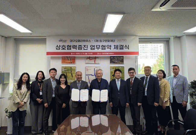 [»çȸ] ´ë±¸¿ÀÆä¶óÇϿ콺 - (Àç)´ë±¸µ¿±¸¹®È­Àç´Ü Áö¿ª¹®È­¿¹¼ú °¡Ä¡È®»êÀ» À§ÇÑ ¾÷¹«Çù¾à ü°á |2025. 05.13